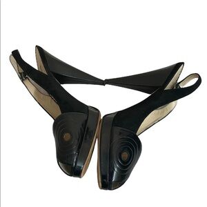 Oscar De La Renta black Pump Platform Open Toe Heels Size 40.5 USA 10.5