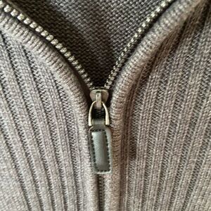 Gray full zipper sweater size XXL cotton blend, leather zip pull