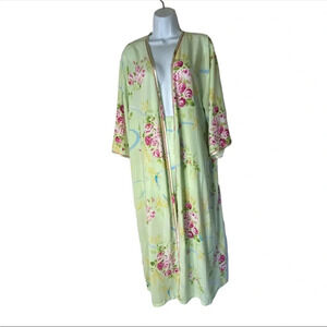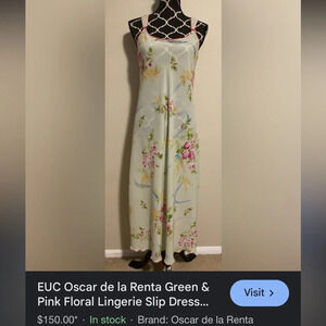 The Oscar de la Renta Green & Pink Floral Lingerie Slip Dress and robe is a beautiful and delicate piece of clothing that is perfect for anyone who wants to feel elegant and feminine. This dress is made from a lightweight and breathable fabric that is adorned with a stunning green and pink floral print, creating a whimsical and romantic vibe.