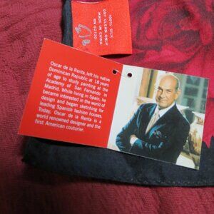 Beautiful and classy floral scarf, 100% silk, by Oscar De La Renta, new, never used, with tag, dimensions: excellent condition, 11”W X 52 ¼”L. Please let me know if you have any questions.