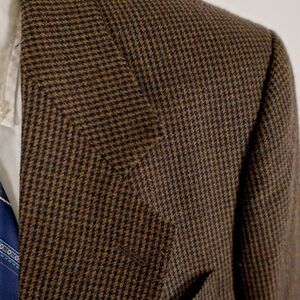 Oscar De La Renta 42R Soft Tweed Wool Brown Green Houndstooth Sport Coat 2 Button