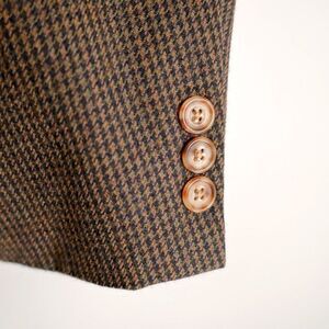 Oscar De La Renta 42R Soft Tweed Wool Brown Green Houndstooth Sport Coat 2 Butto
