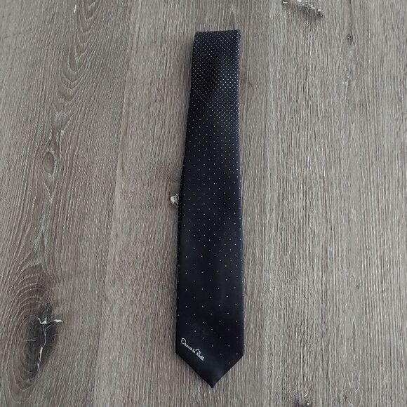 Oscar De La Renta Men’s Necktie Black, White Doted Tie
