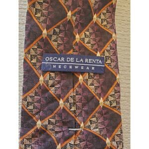 Elevate your style with this sophisticated Oscar de la Renta neck tie. Crafted from luxurious brown silk, it features a timeless plaid pattern that adds a touch of elegance to any outfit.