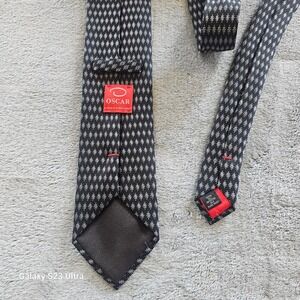 Oscar, Oscar de la Renta tie necktie black white geometric design, 60", silk