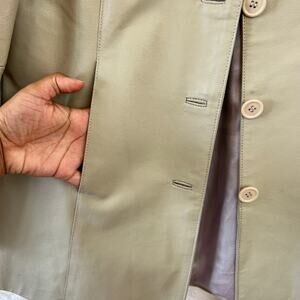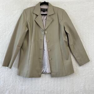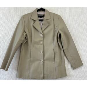 Oscar Piel Vintage Beige Cream Genuine Leather 90s Blazer Jacket Womens Sz Small
