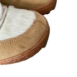 Oscar Sport Apre-Ski Fur Rabbit Goat Winter Boats 37 fits US 6-6.5 Cream Brown in excellent condition except for spot on right boot and laces need to be cleaner. No box. Heel height is 2 inches