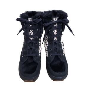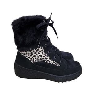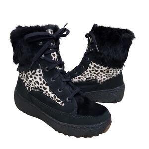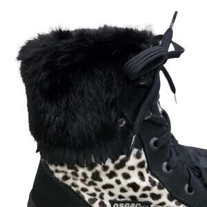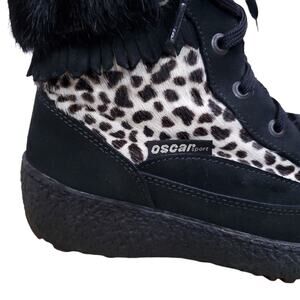 Oscar Sport Boot Lace Up Goatskin Black Fur Animal Print Snow Ski Apres EU 40