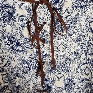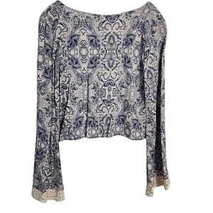 Oscar St Bohemian Style Corset Front Top, Lace Trimmed Sleeves, NWT, Large
