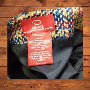 vintage, holiday, rainbow, wool blend, tweed, classic, belted, designer, office, career, luxury, quiet luxury