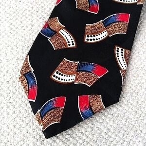 Oscar de La Renta 100% Silk Necktie in Blue, Brown, Black, Red and White Pattern