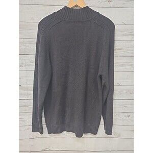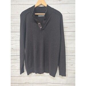 Oscar De La Renta men's solid brown pullover sweater with 1/4 snap button front. Cotton, acrylic blend.