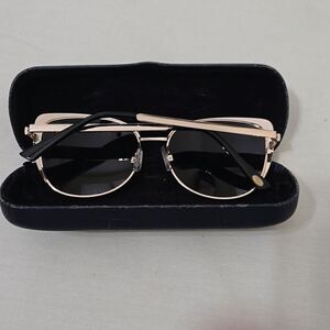 Dark sunglasses with gold, metal frame. Great pre-owned condition. no original case. please refer to photos for more details and measurements.