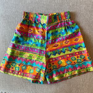 Oscar de la Renta 100% Silk Colorful Pattern Shorts Womens M Artsy Retro Y2K