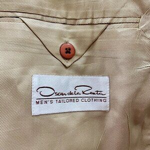 Stylish Oscar de la Renta 2 Button Blazer Jacket for men. Crafted from 100% wool in size 42 L, it offers a polished, modern look perfect for any occasion.