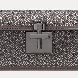 Oscar de la Renta Alibi Slim Crystal Pave Satin Shoulder Bag - Gray