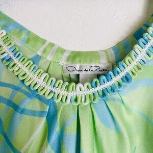 Oscar de la Renta Babydoll Dress Short Blue Green Leaf Print Flowy Beach size M