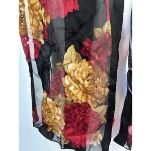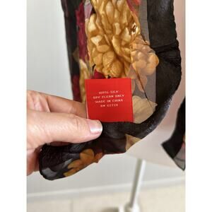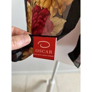 🌻Oscar de la Renta Beautiful Colorful Rectangle Silk Scarf Red Gold Roses