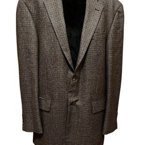 Oscar de la Renta Brown & Black Herringbone Wool Sport Coat Mens 44L gently worn