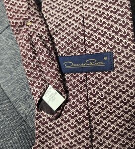 Oscar de la Renta Burgundy and White Patterned Tie Silk Necktie