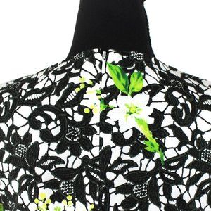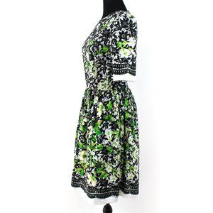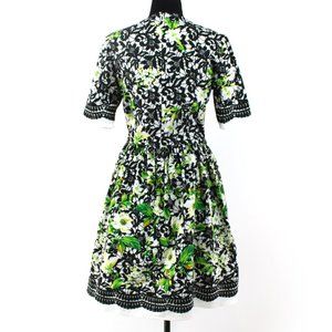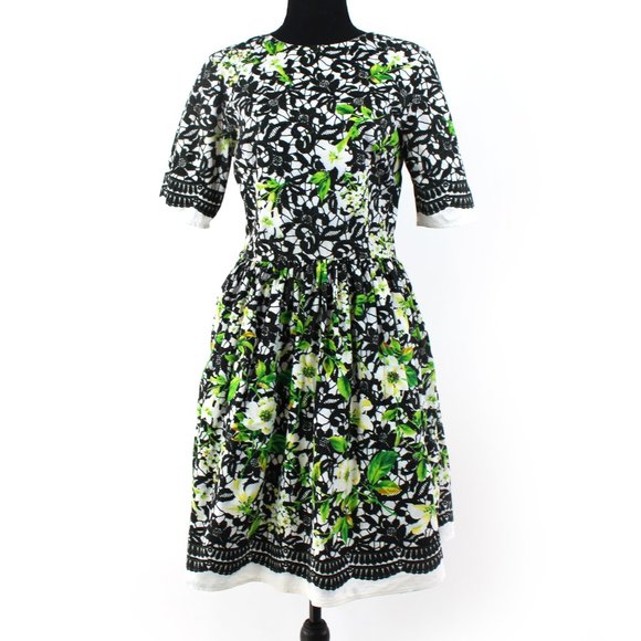 Oscar de la Renta Cotton Poplin Black White Green Floral A-Line Dress 4