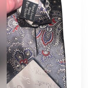 Oscar de la Renta Couture 100% Silk Red Grey Navy Green Paisley Abstract Tie Set