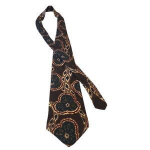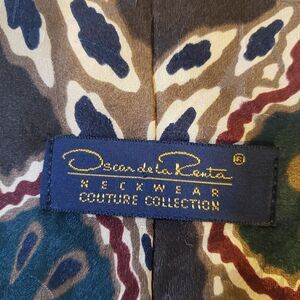 Oscar de la Renta Couture Collection Neck Tie Mens Brown Teal Cream Floral