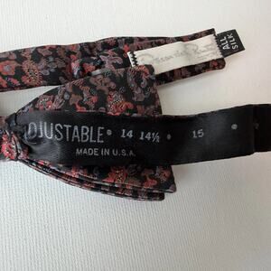 Vintage Oscar de la Renta Couture silk bow tie in black with red and slate paisley pattern. Handcrafted in the USA and adjustable to fit most neck sizes. Elegant and timeless — ideal for weddings, formal events, or collectors.