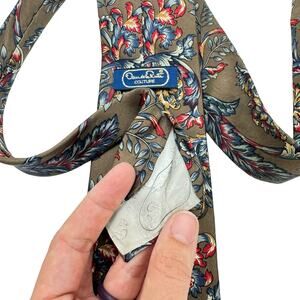 Oscar de la Renta Couture Taupe Brown Red Blue Floral Print Men's Neck Tie