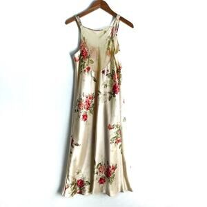 Elegant cream chemise with floral print. Features red and green accents. Perfect for intimate wear.