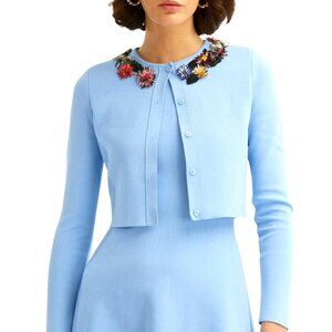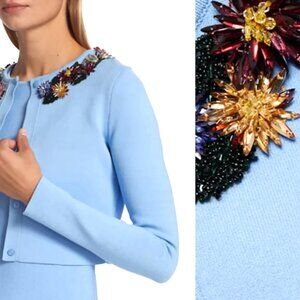 Oscar de la Renta Crystal Embroidered Flower Cardigan SZ S $2,490