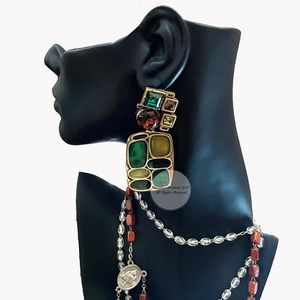 Oscar de la Renta Earrings Modernist Statement 3in Drop Dangle Abstract Vintage