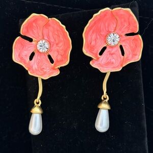 Oscar de la Renta • Enamel Poppy Flower Pearl Drop Earrings