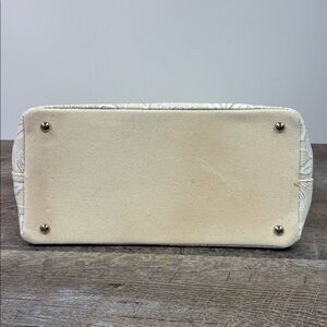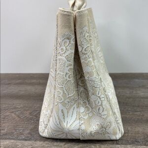 Effortlessly elegant and beautifully crafted, this Oscar de la Renta canvas tote features intricate white floral print across a soft ivory canvas body. Designed with a structured silhouette and double top handles, it blends refined sophistication with everyday practicality. The spacious interior and dual zippered wall pockets make it perfect for work, travel, brunch, or warm-weather outings—an elevated essential from a legendary luxury fashion house.