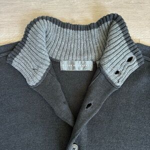Oscar de la Renta Funnel Mock Neck Button Front Cardigan Sweater Old Money Preppy Academia Gray Size Medium
