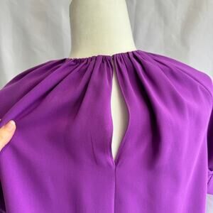 Oscar de la Renta Gathered Stretch Silk Blouse in Hyacinth - Size 4