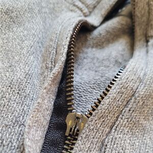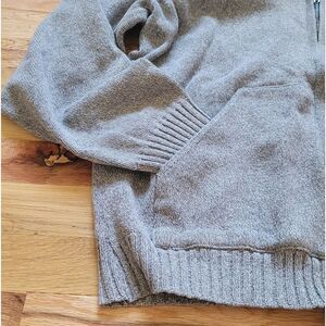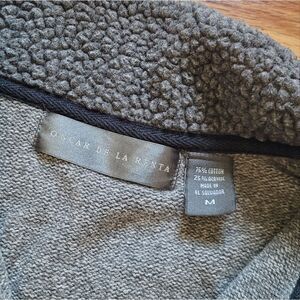 Oscar de la Renta Gray Fleece Collar Zip Front Cardigan Sweater Medium