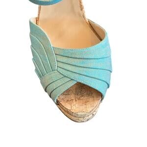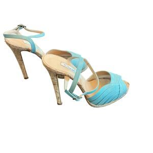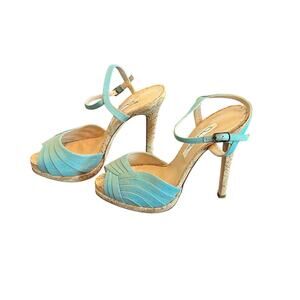 Oscar de la Renta Ladies Stiletto Cork Heel Sandals Ankle Strap Turquoise Sz 38
