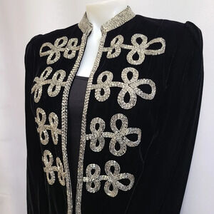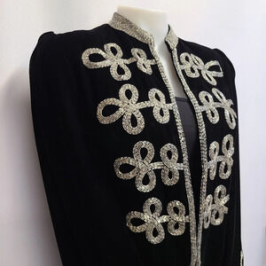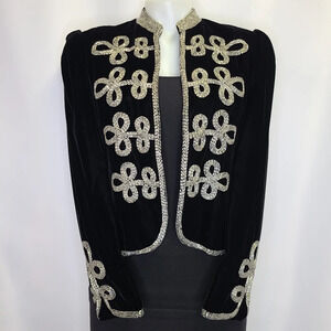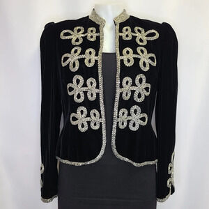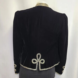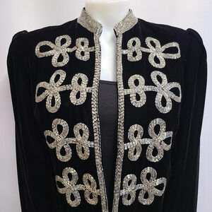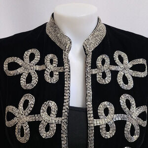 Oscar de la Renta Lillie Rubin Vintage Black Velvet Silver Beaded Jacket Medium