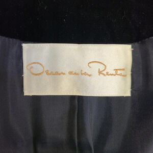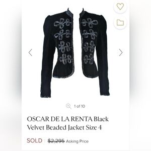 Oscar de la Renta Lille Rubin Vintage Black Velvet Silver Beaded Embellished Jacket Blazer. Luxurious black velvet embellished throughout with sparkling silver seed beads. Jacket design has a feminine military flair. Fully lined with black satin lining. Madarin collar and open front. Slight puff sleeve. Beading is intact and has only one missing bead on the back of the neck as pictured. Small flaw is a thinner area of the velvet on the front right side, pictured circled and close up; not very noticeable. In overall excellent condition. A rare and beautiful luxury item. Poshmark authentication and free shipping are included with purchase. Last photo is a sold price comp.