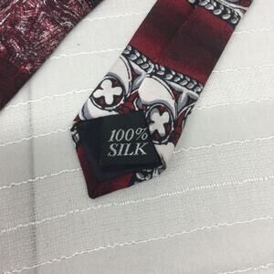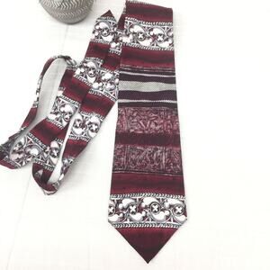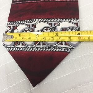 Oscar de la Renta Maroon White Mixed Print Retro Designer Wide Width Silk Tie