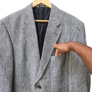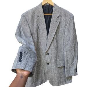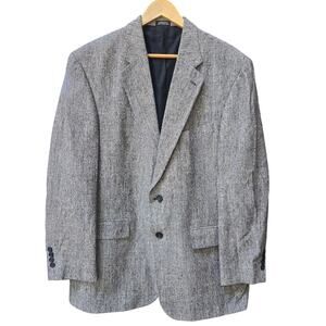 Oscar de la Renta Men Vtg Tweed 100% Silk Two Button Blazer 42R Gray Sports Coat