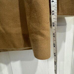 This Oscar de la Renta sport coat blazer jacket is a timeless piece that will elevate any outfit. The jacket is made of high-quality camel tweed fabric and features a classic fit, double-vented jacket vent style, and notch lapel style. The jacket front button style is two-button, and it comes in a size 44.