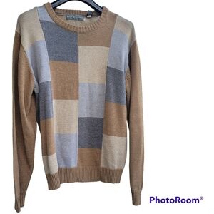 Oscar de la Renta Mens Crew Neck Sweater Browns Grays Colorblock XL.