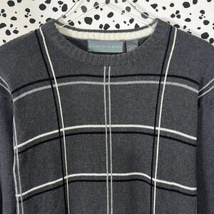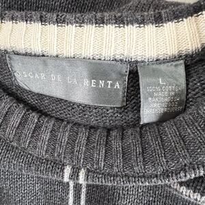 Oscar de la Renta | Men’s Grey Plaid White Grid Cotton Designer Sweater L EUC