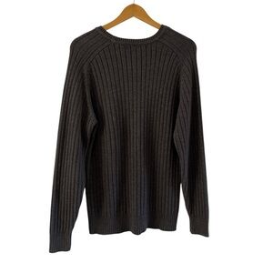 Oscar de la Renta Men’s Ribbed Knit Crewneck Sweater Gray Size M