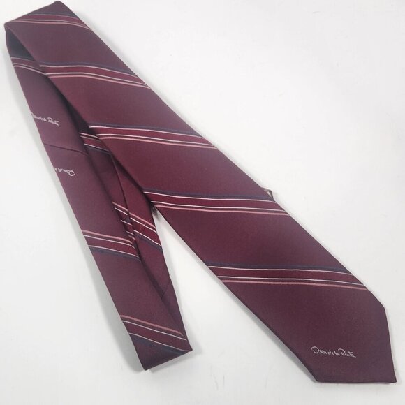 Oscar de la Renta Men's Silk + Poly Tie Necktie Burgundy Striped