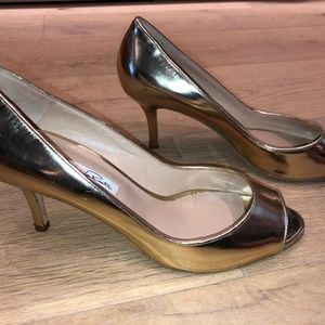 Beautiful Oscar de la Renta metallic gold peep toe high heels. Barely worn!