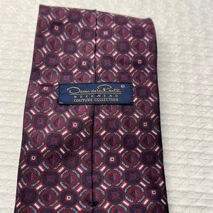 Oscar de la Renta Neckwear Couture Collection purple and blue circle pattern 100% imported silk. In good used condition with no rips, stains, or hole. Comes from a smoke free and pet friendly home.