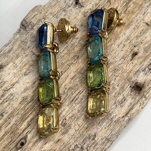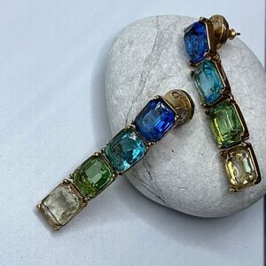 Oscar de la Renta Opulent Drop Earrings. More is More take on Glamor. Set with Ombre' Blue to Green Tone Glass Crystals, This pair is sure to catch the light from every angle.